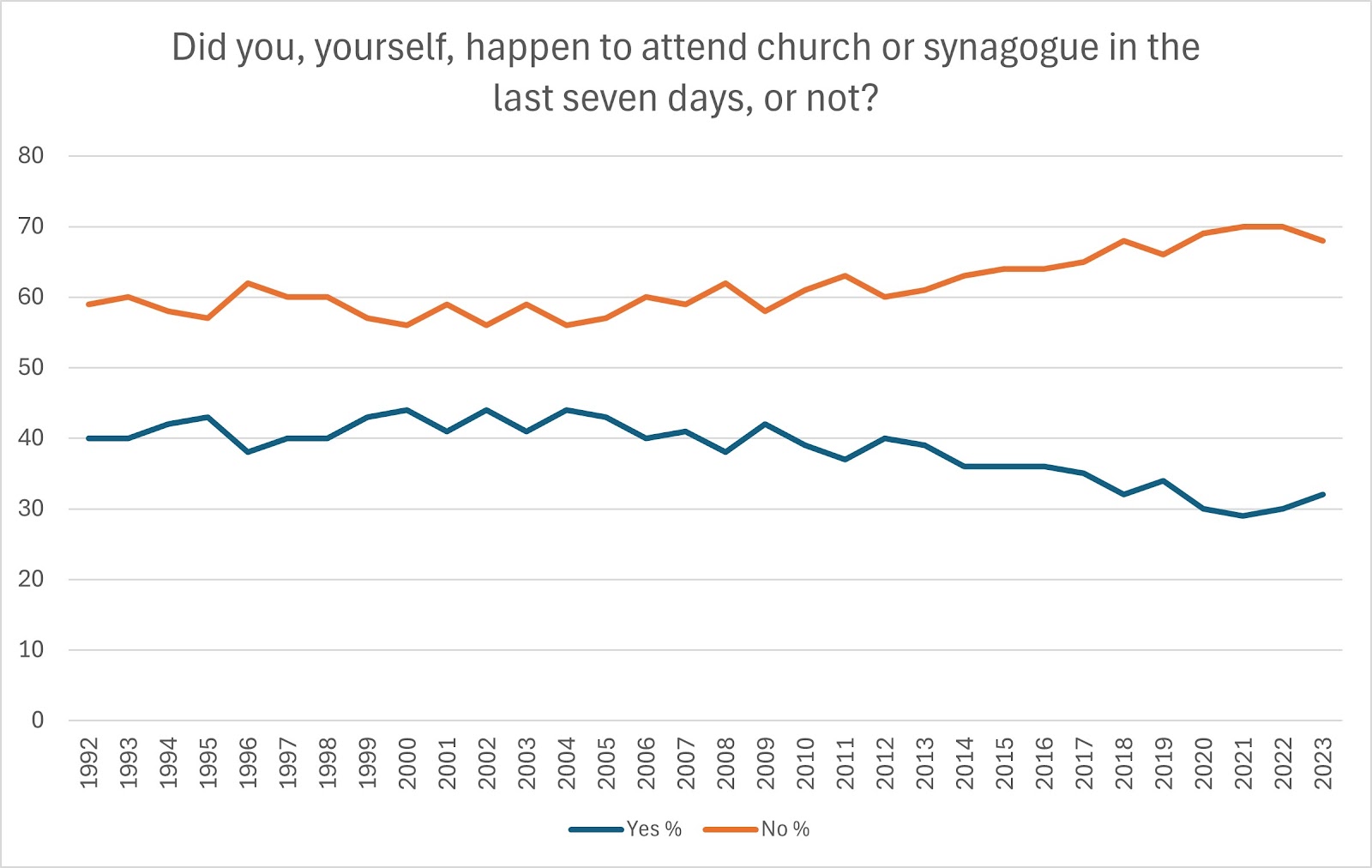 In contrast to the view we in Europe sometime have of the USA where fundamentalist religion and far-right Christian nationalism seem to be growing, especially in their political influence, the reality is that religion in the USA is following Europe's lead and losing its grip on the population.